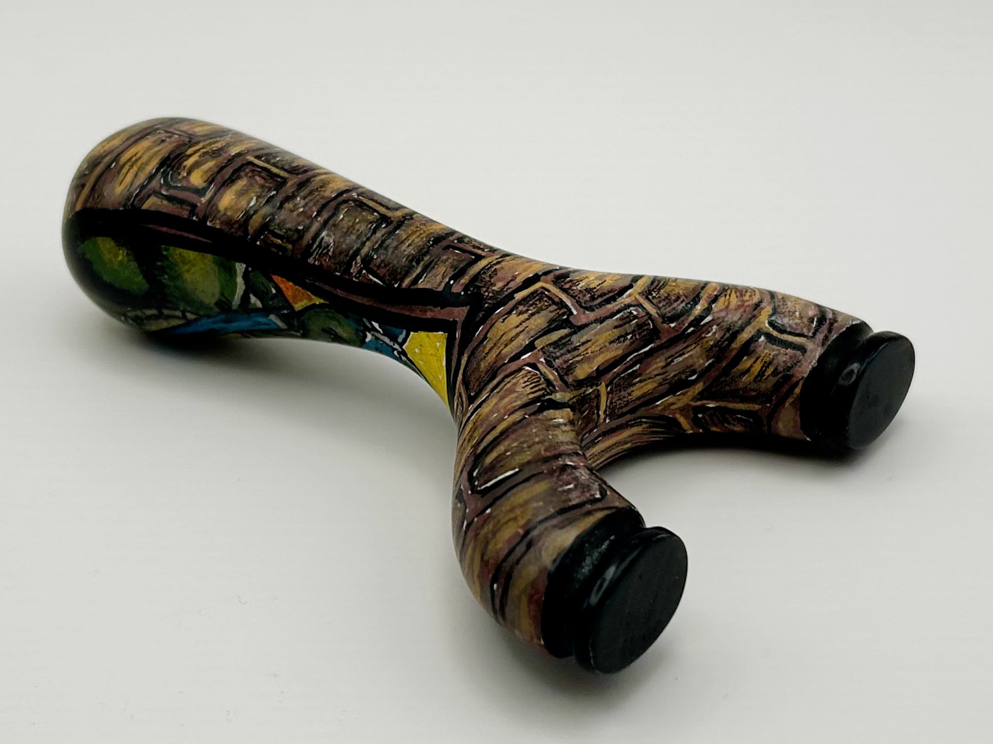 Turtle Ninja Natty: Made by Turtle Slingshot based in Indonesia. These hand painted slingshots are shaped with a nice ergonomic hold. Featuring one of a kind hand crafted art work, these natties are stunning and perfect to add to your collection.
