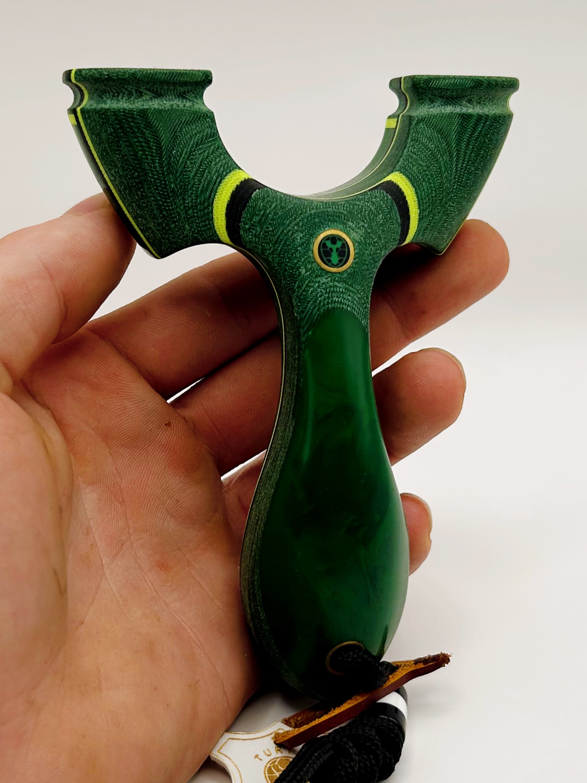Kungo Ergo Lite: Designed and produced by Turtle Slingshots based in Indonesia. The Kungo Ergo Lite is designed to be held in a Brace-Grip style hold. Similar to the Kungo SL but features an ergonomic hold. Excellent craftsmanship and beautifully finished. Excellent Value.