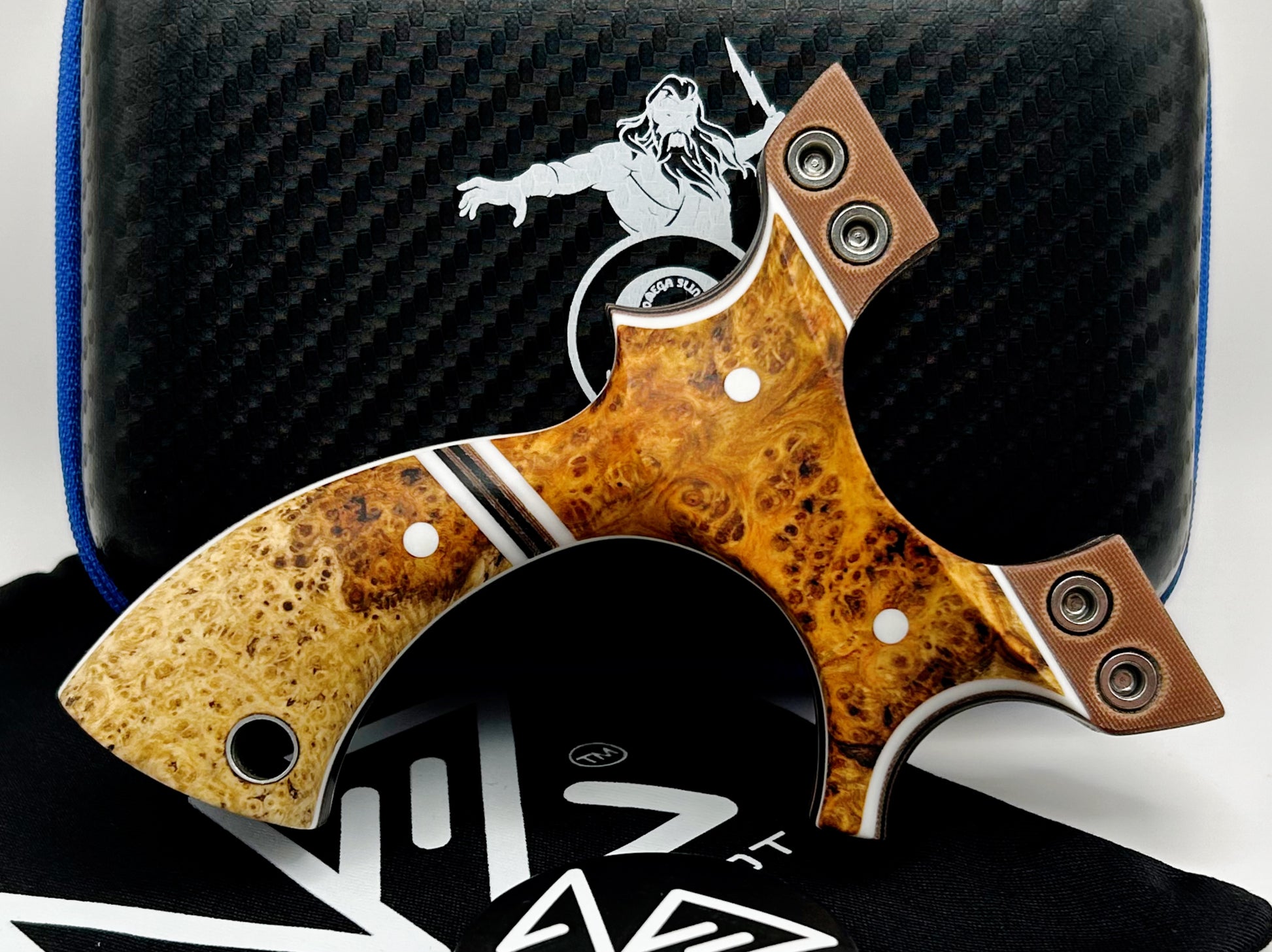 Eagle by NFZ (left hand hold): The eagle is a wonderful slingshot designed to be held with a pinch-grip style hold. Very comfortable and stable hold with crisp reference points. 100% handmade beauty, Highly recommended.