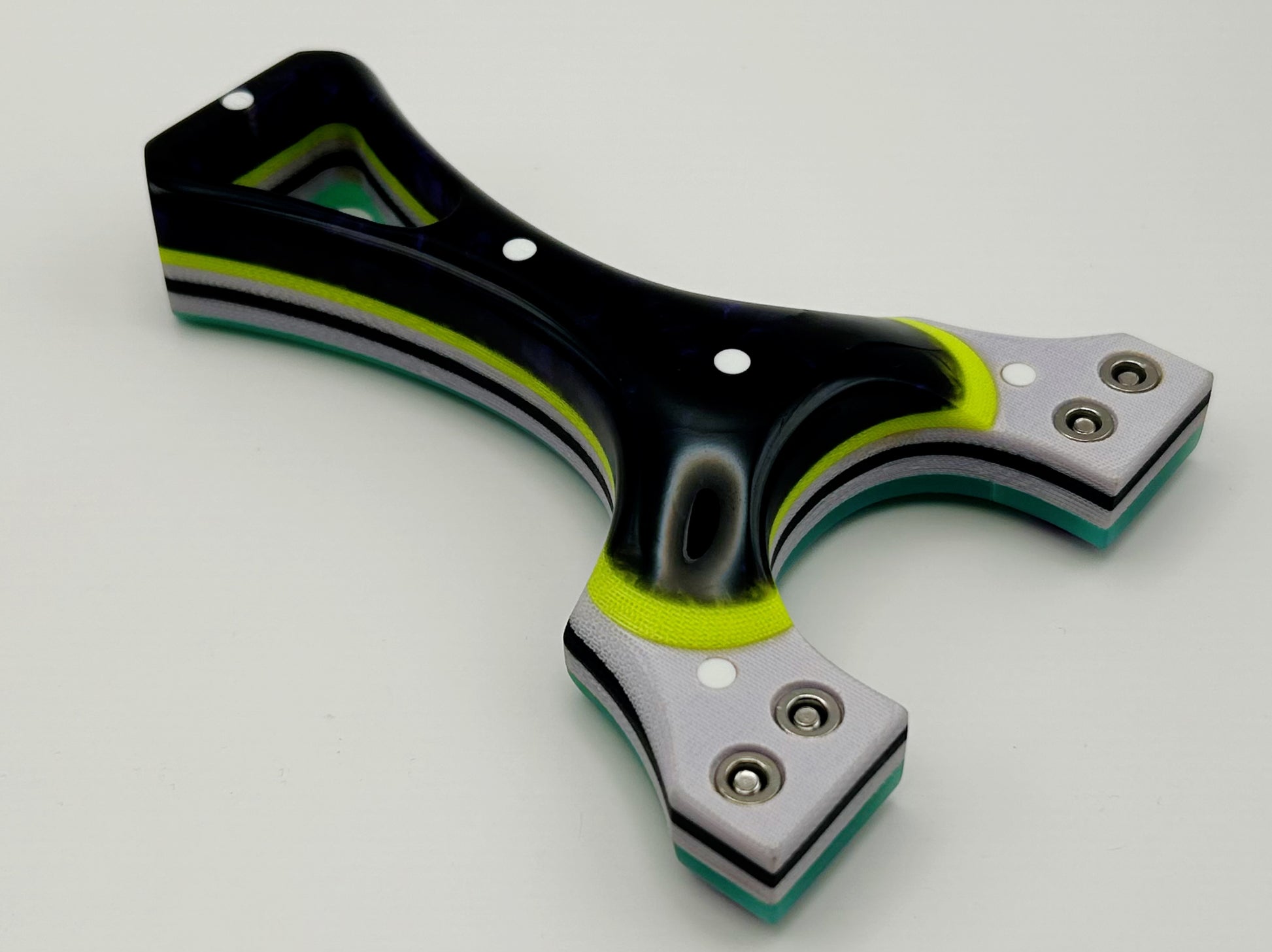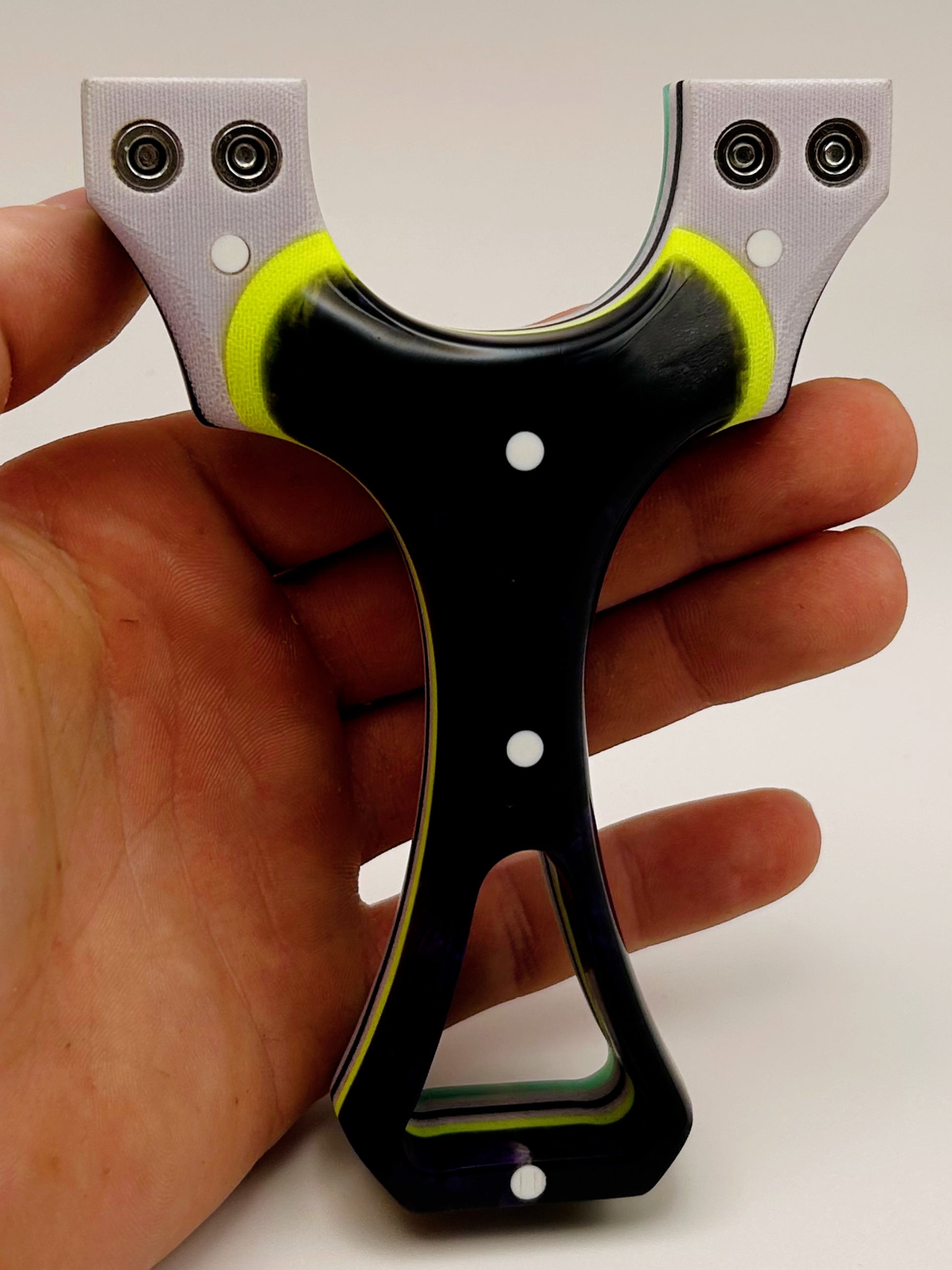 Isosceles by NFZ: The Isosceles is a wonderful full-size slingshot designed to be held with a brace-grip style hold. Can be used in either the left or right hand. 100% Handmade beauty.
