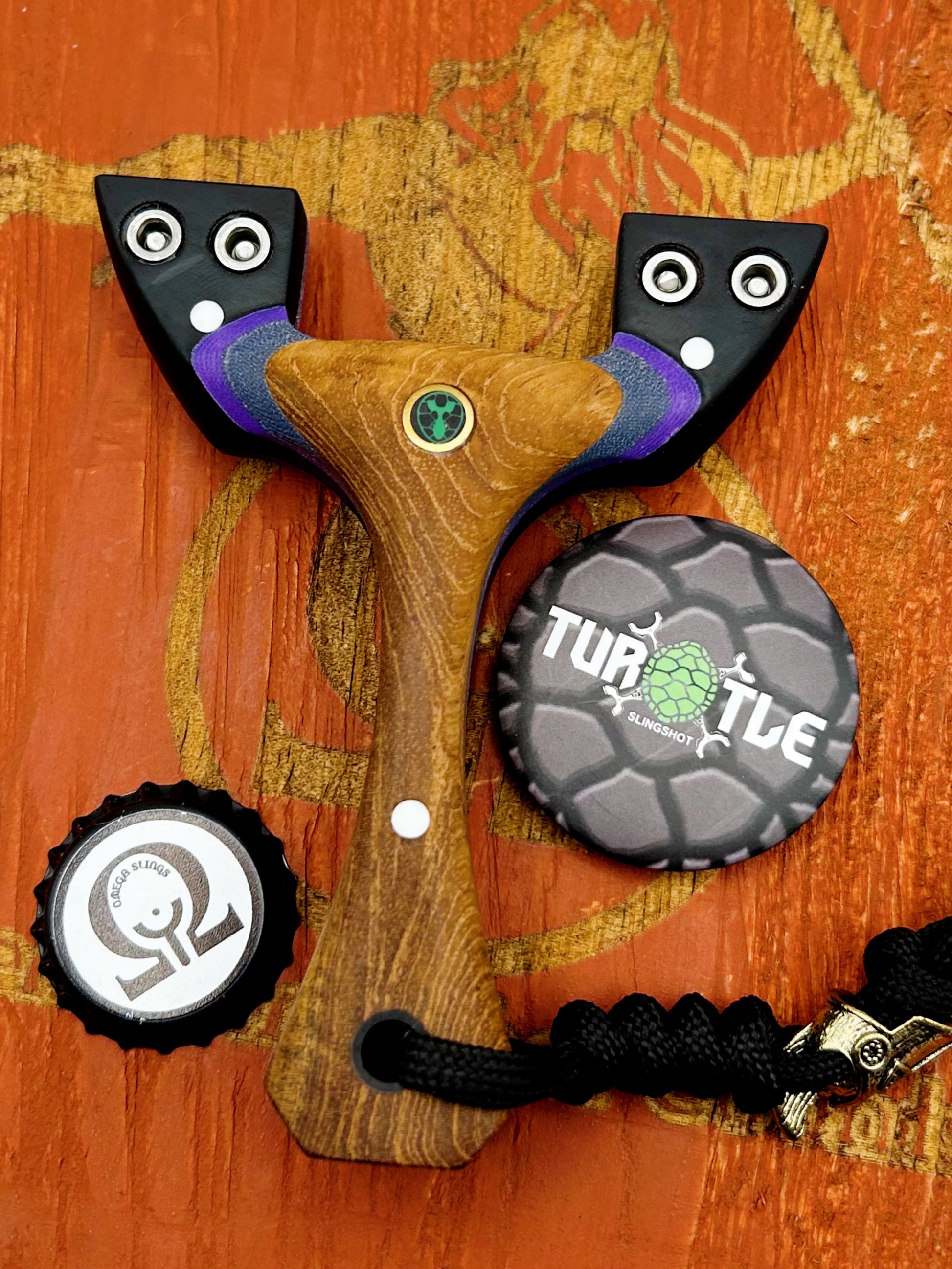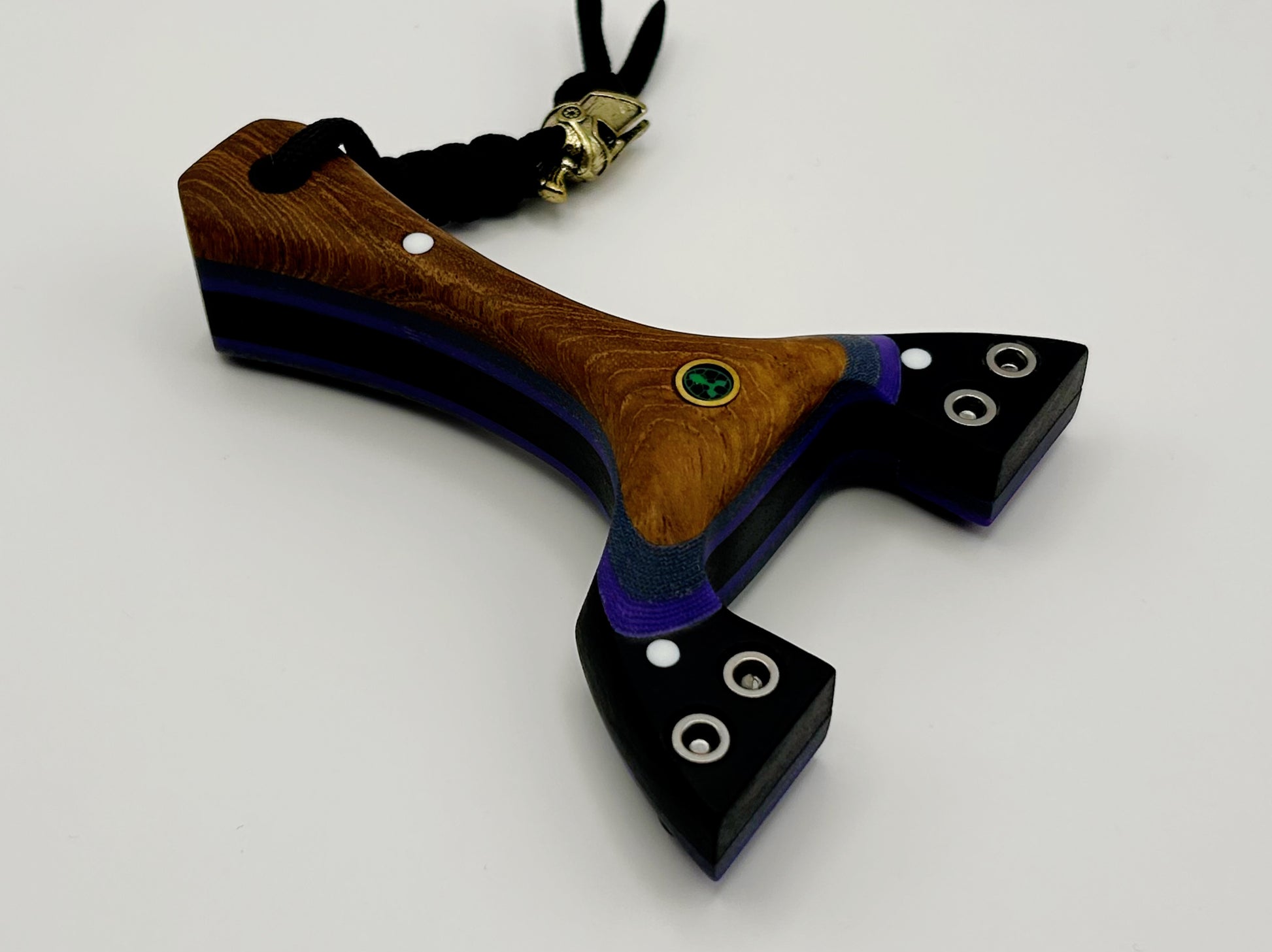 Spartan: Produced by Turtle Slingshots based in Indonesia. The Spartan gets its name from resembling the nose guard on a Spartan Helmet and is designed to be held with a brace-grip style hold. Ergonomic style slingshot providing a comfortable firm grip.