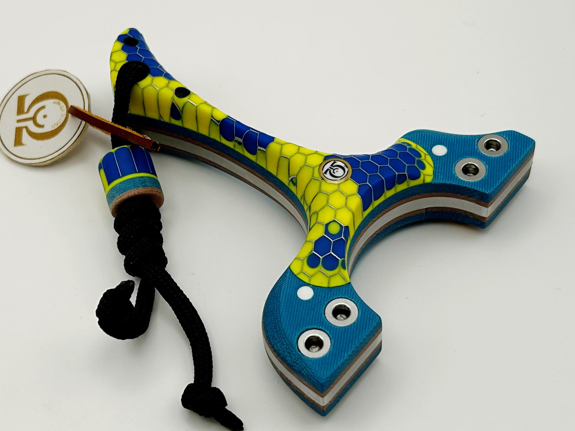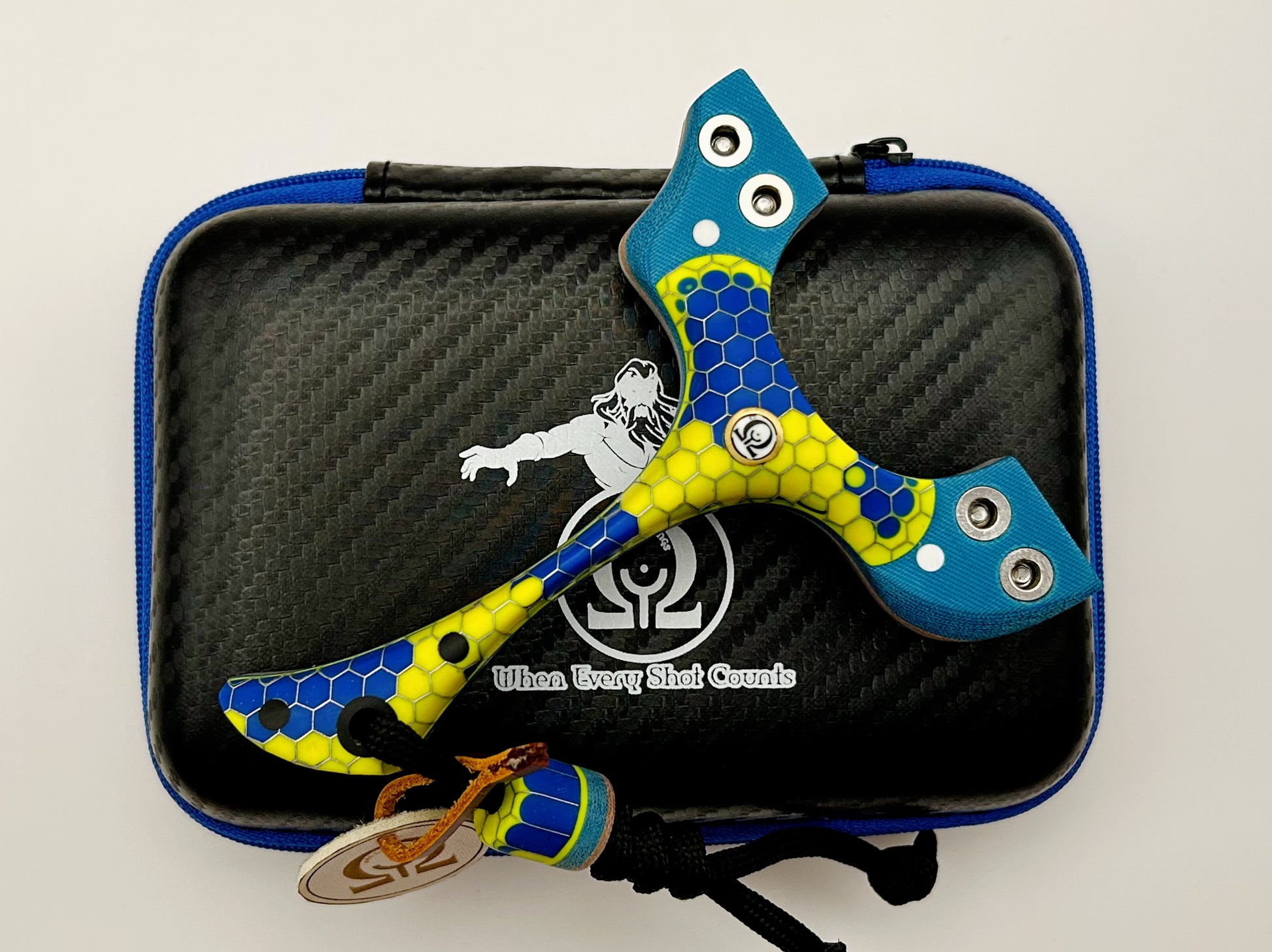 T-Bone (Left Hand Hold): Designed by Chuckin Steel and produced by Turtle Slingshots based in Indonesia. The T-Bone was designed to be held with a brace-grip style hold when using. Nice short forks with a comfortable ergonomic hold.