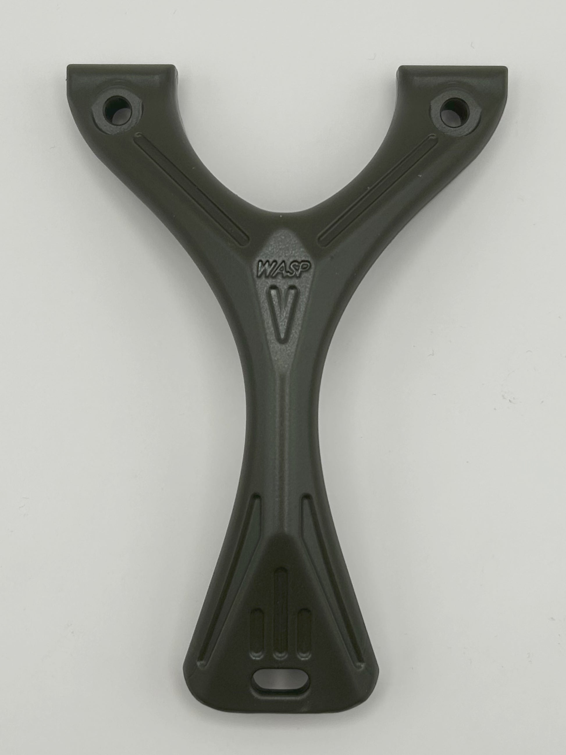 The TriGrip uses the Wasp Enzo Band clamp system for band set attachment, semi recessed into the target side of the frame. The Wasp Insignia faces the shooter.
