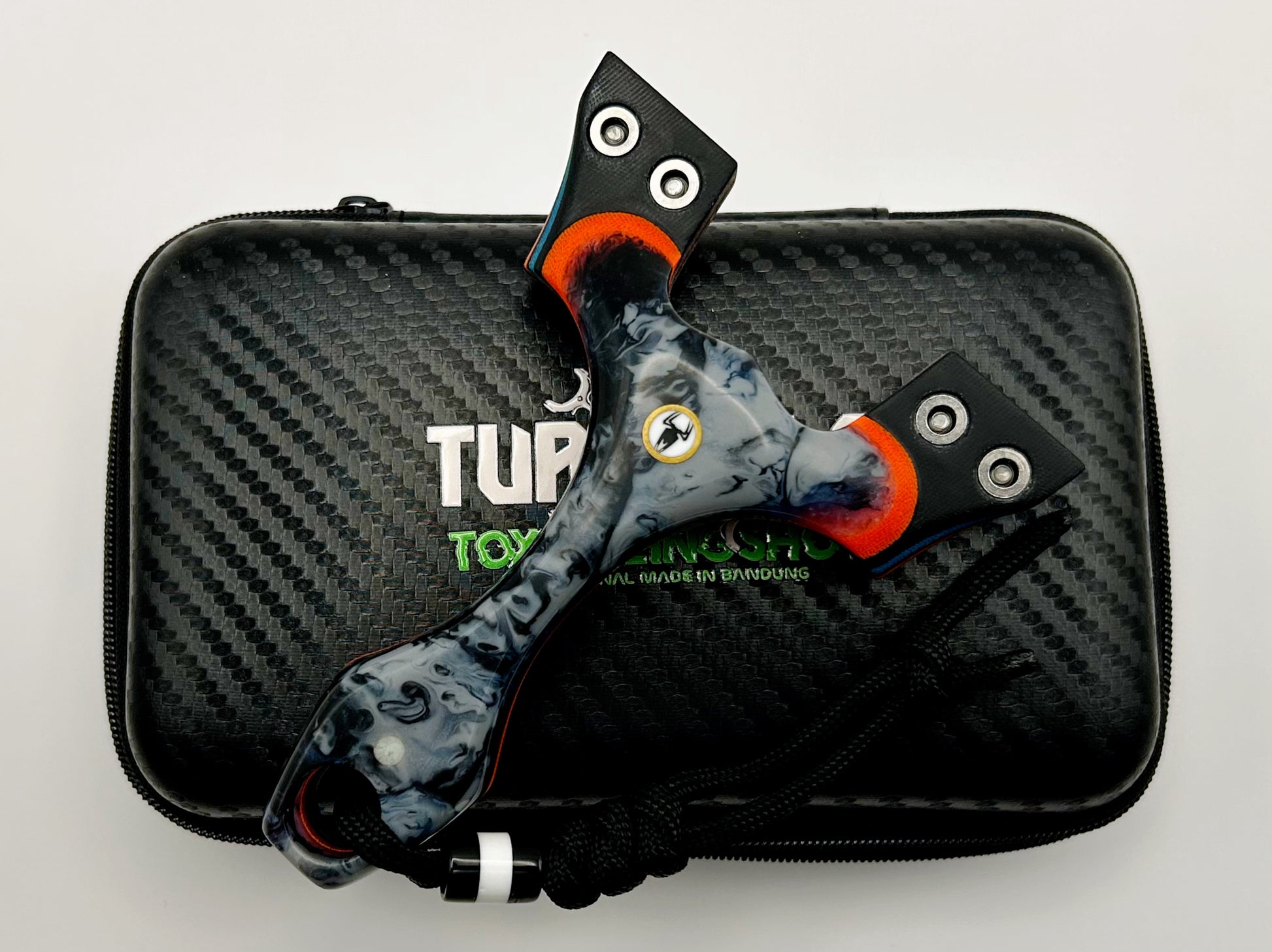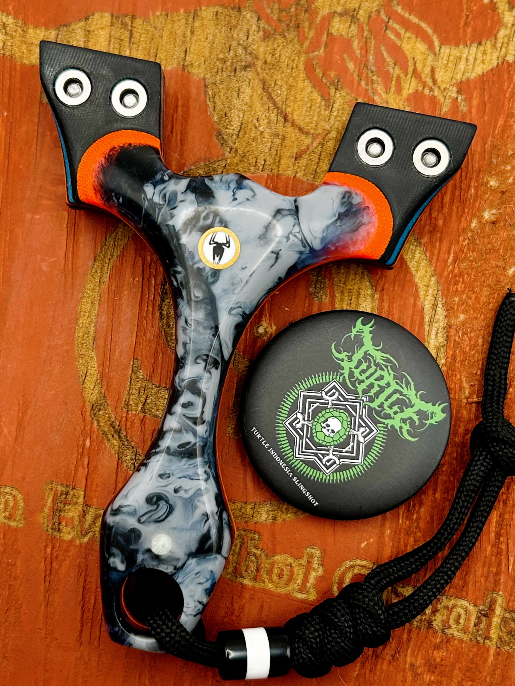 Widow: Produced by the team over at Turtle Slingshots based in Indonesia. The Widow is a perfect ergonomic brace-grip style slingshot. Crisp and sharp fork corners providing a very clean reference point. Very comfortable and unique this slingshot is highly recommended.